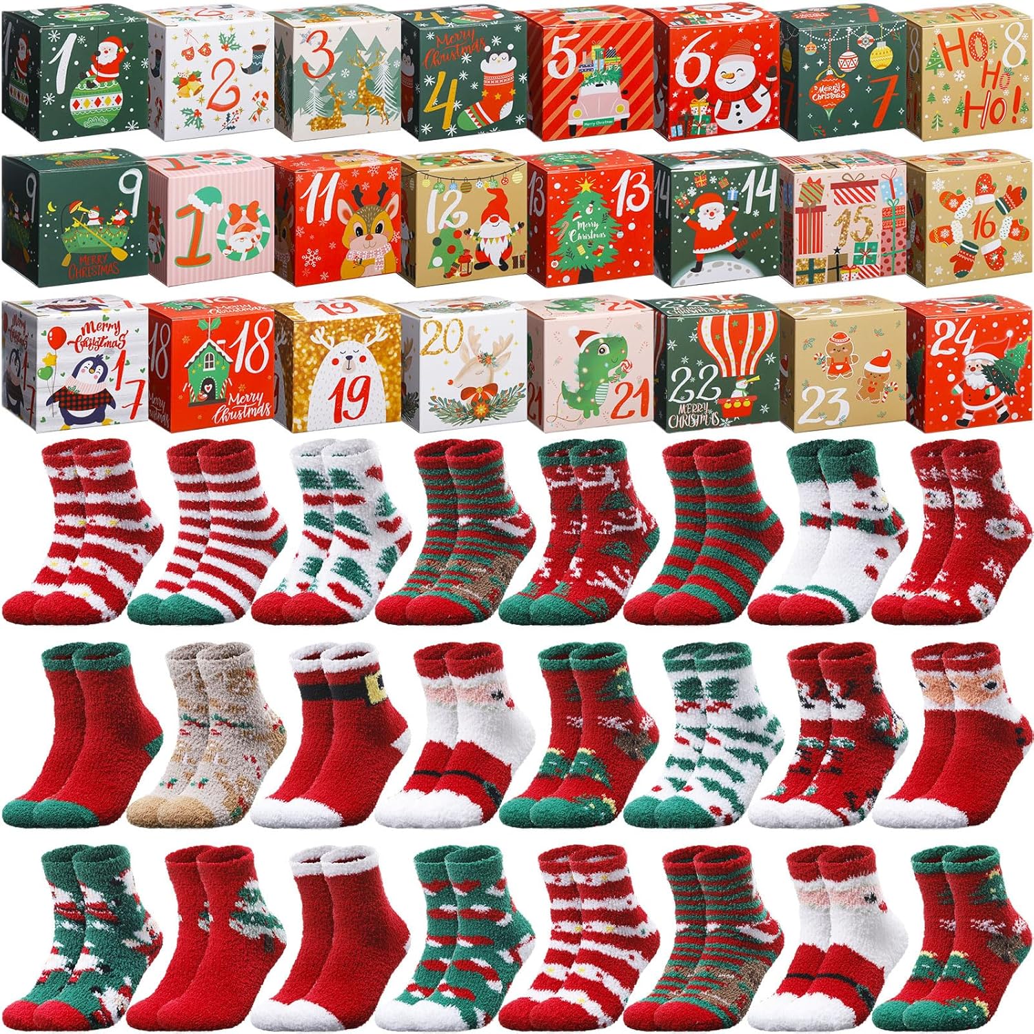 - Exciting Holiday Countdown: experience the thrill of anticipating Christmas 2025 with our Christmas fuzzy socks paired with Christmas advent boxes; Each day, discover a new surprise with our set of 24 socks, making every moment of the holiday season special and joyful